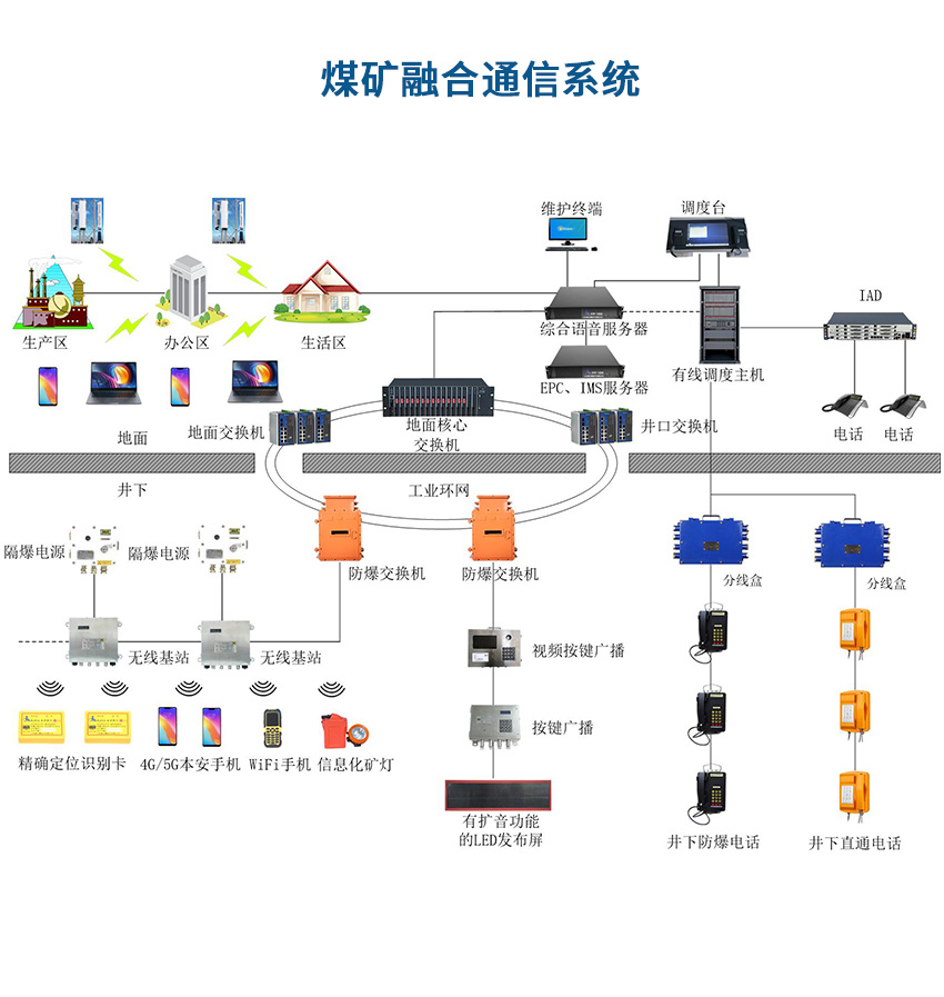 煤礦融合通信系統是煤礦井下安全避險“六大系統”的重要組成部分。煤礦融合通信系統作為當下新一代熱門信息技術契合煤礦智能化發(fā)展需求,為解決好煤礦井上下的通訊問題提供了全新方案,為我國智能煤礦的建設注入了新動力和新活力。煤礦融合通信聯絡系統實現融合通信系統與人員定位系統、安全監(jiān)控系統和生產自動化系統的聯動控制,可以根據人員實時軌跡,實現安全預警和報警以及環(huán)境監(jiān)測等功能,確保井下現場人員的安全。