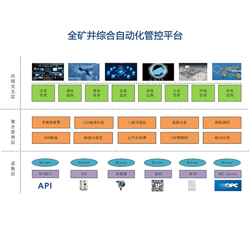 礦井智能化綜合管控平臺是以“礦井設(shè)備自動化系統(tǒng)管控云平臺+礦井智能化綜合解決方案”為核心的一體化管控云平臺,融合了“云計(jì)算、物聯(lián)網(wǎng)、大數(shù)據(jù)、工業(yè)互聯(lián)網(wǎng)+”等多種技術(shù),以實(shí)現(xiàn)礦井機(jī)電設(shè)備的“全生命周期管理”、井下生產(chǎn)設(shè)備的“自動化、少人化”、電力設(shè)備運(yùn)維的“智能化、無人化”、隱患故障處理的“動態(tài)化、實(shí)時化”、管理運(yùn)營的“數(shù)字化、智能化”,打造大數(shù)據(jù)時代的智慧煤礦。